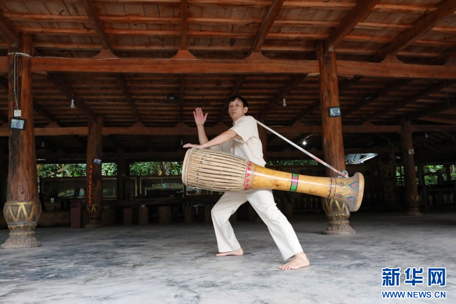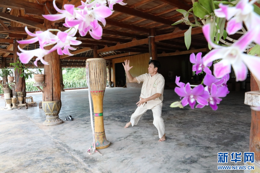 8月16日,波罕丙正在練習(xí)象腳鼓舞。新華網(wǎng)發(fā)(李云生 攝) 初秋雨后的清晨,雨林環(huán)抱中的云南省西雙版納傣族自治州勐臘縣勐臘鎮(zhèn)曼旦村,傳來節(jié)奏明快的象腳鼓聲。這是國家級非物質(zhì)文化遺產(chǎn)代表性項(xiàng)目傣族象腳鼓舞代表性傳承人波罕丙正在指導(dǎo)徒弟們練習(xí)象腳鼓舞。2012年,波罕丙在自己家成立傳習(xí)所教授徒弟。 象腳鼓舞以象腳鼓作為道具,通過獨(dú)舞、對舞、群舞等多種形式呈現(xiàn)。矯健的舞姿在鼓聲中躍動,傳統(tǒng)文化在雨林深處延續(xù)著。