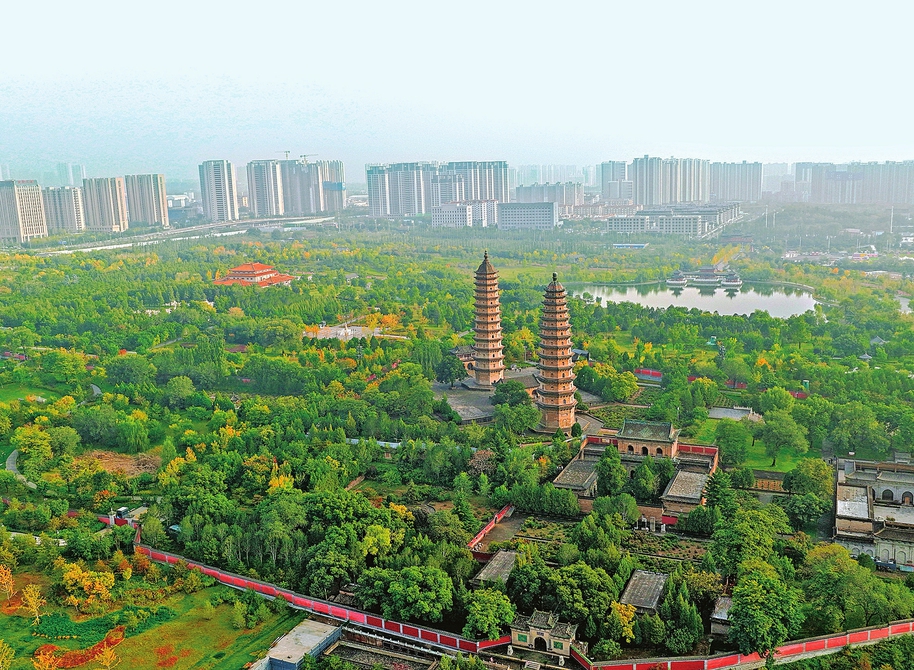 10月13日,秋日的太原市雙塔公園層林盡染,色彩斑斕。雙塔巍峨聳立,湖水澄澈如鏡,園內步道蜿蜒,盡顯秋日的詩意與靜謐。