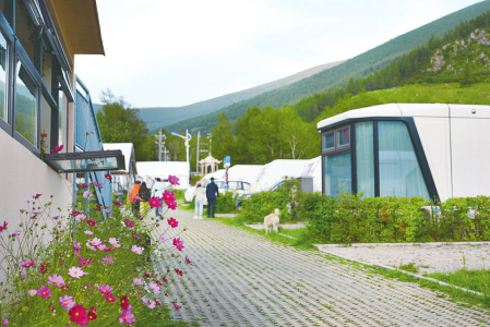特色住宿業(yè)態(tài)則從高端到普惠多點(diǎn)開(kāi)花,滿(mǎn)足不同客群需求。獨(dú)具匠心的設(shè)計(jì)融入自然景觀,讓游客在青磚灰瓦間品茶論道,感受山風(fēng)的輕撫,體驗(yàn)“結(jié)廬在人境”的閑趣。其中,光明寺村“早種晚收”露營(yíng)基地可以說(shuō)是具有代表性的一處。在地方鎮(zhèn)政府和鄉(xiāng)村振興戰(zhàn)略的支持下,露營(yíng)基地依托東臺(tái)溝生態(tài)資源,建成28輛房車(chē)營(yíng)位并配套露天電影、自助燒烤區(qū),智能充電樁、星空觀景臺(tái)、生態(tài)衛(wèi)生間等現(xiàn)代化設(shè)施,年均接待游客超2萬(wàn)人次,成為社交平臺(tái)上的“網(wǎng)紅打卡地”,在戶(hù)外休閑旅游和特色住宿市場(chǎng)中建立了良好的聲譽(yù)和強(qiáng)大的競(jìng)爭(zhēng)力。