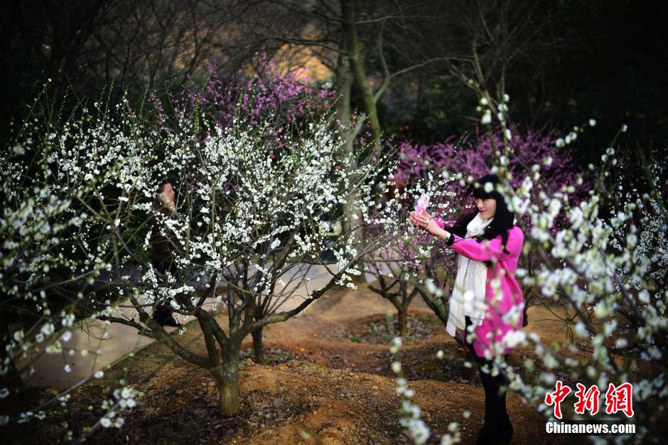 2月20日,三湘大地氣溫逐漸回升,湖南省森林植物園千株梅花競(jìng)相綻放,眾多游客置身于花海中,與這難得的美景合影留念。 楊華峰 攝
