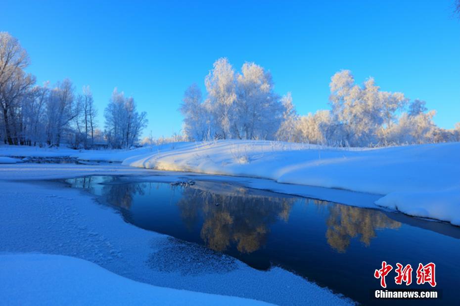 連日來,新疆北部持續(xù)低溫,哈巴河縣受寒冷天氣的影響,出現(xiàn)了大面積霜掛美景。一棵棵白樺樹被妝點成銀白色,晶瑩剔透,潔白無瑕,置身其中,如同進(jìn)入夢幻世界一般。圖為清晨的哈巴河縣銀裝素裹,云霧繚繞。 劉是何 攝