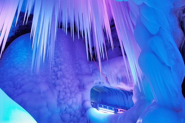 專家們稱,該冰洞位列全國一萬多個(gè)洞穴中僅有的九個(gè)冰洞之首。洞內(nèi)制冷機(jī)制最強(qiáng)、冰儲(chǔ)量最多,現(xiàn)開發(fā)近百米。分成上下五層,看冰洞須穿棉衣、戴手套,小心翼翼地游覽。通過鉆冰洞,下冰樓梯,過冰棧,可到各層觀光。每層可容納數(shù)十人。洞內(nèi)四周全是冰。由冰形成的冰柱、冰簾、冰瀑、冰花、冰佛、冰床、冰鐘、冰人、冰菩薩等,千奇百怪、不一而足。洞內(nèi)大大小小的景致或玲瓏剔透,或晶瑩奪目,或婀娜多姿,或雄偉壯麗,無不令人驚嘆,堪稱一個(gè)冰的絕妙世界。