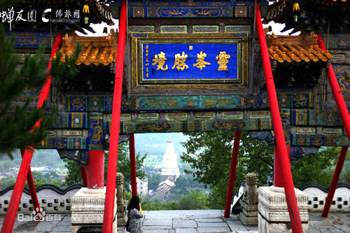 沿一百零八級石階登高,按照佛家的說法,就把人間的一百零八種煩惱踩在腳下了。置身牌樓下,手撫門柱,回身四望,遠處的山,山上的云,近處的清水河,雄壯多姿的寺廟建筑群,都收入眼中,深感“靈峰勝境”四個字點得妙。這里,是很好的登高覽勝的觀景點。一九四八年春,黨中央機關從延安開赴河北省西柏坡,途中路過五臺山,陳毅同志作詩道:“本不游五臺,迂道時日緊,至今有余歡,曾踏菩薩頂。”