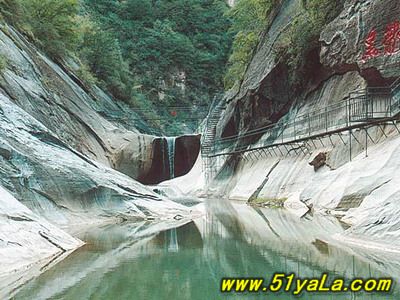 太行山大峽谷的山勢(shì)千奇百怪各不相同,有悠閑品茗,切磋棋藝的仙人對(duì)弈;有鎮(zhèn)守著自己領(lǐng)地的凜凜雄獅,有“超然云霧中,不與群山伍”的照壁峰,有沐浴朝陽的金雞報(bào)曉,各個(gè)超然出眾。有兩座造型奇特的山被當(dāng)?shù)厝朔Q做紙(指)山,后面稍遠(yuǎn)的好象一張薄薄的紙,前面的又象一根手指頭,所以都被叫做紙(指)山,但卻代表著不同的造型。 五指峽中的黑龍?zhí)端浅G宄?,終年流淌不息,在這個(gè)還有一個(gè)很有趣的說法,據(jù)說每到大旱的時(shí)刻人們就到這幾來求雨,但是求雨的人一定要是屬龍和蛇的,因?yàn)槭刈o(hù)著黑龍?zhí)兜氖且粭l黑龍。清澈的山澗為來到這里的人們帶來了快樂。游人可以泛舟水上,進(jìn)行皮筏漂流。 在陡峭絕壁上開鑿的古棧道旁,有一座被稱為仙人橋的石筑橋梁,它曾為溝通晉豫兩地的經(jīng)濟(jì)、文化交流立下了不小的功勞。仙人橋建于明朝,長(zhǎng)五十米,高二十五米,結(jié)構(gòu)嚴(yán)謹(jǐn),堅(jiān)固樸實(shí)。相傳當(dāng)時(shí)曾有晉、冀、魯、豫、秦五省十八府、九十六縣的民眾參與修建。離仙人橋不遠(yuǎn)處,連接著一座堅(jiān)實(shí)的橋梁,跨過這座橋和相連的山洞,就進(jìn)入了龍泉峽。