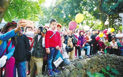 近日,在??邶埲A區(qū)新坡鎮(zhèn)斌騰村,游客排隊觀看特色表演,現(xiàn)場井然有序。