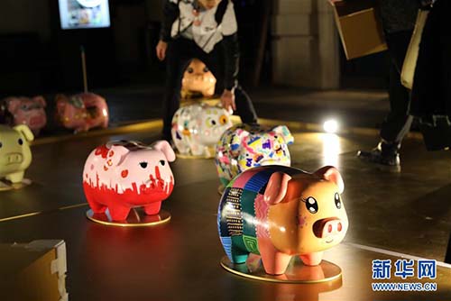 香港街頭布置的一處小豬吉祥物展(1月23日攝)。 農(nóng)歷豬年臨近,香港街頭裝扮得流光溢彩,喜氣盈盈。 新華社記者 吳曉初 攝