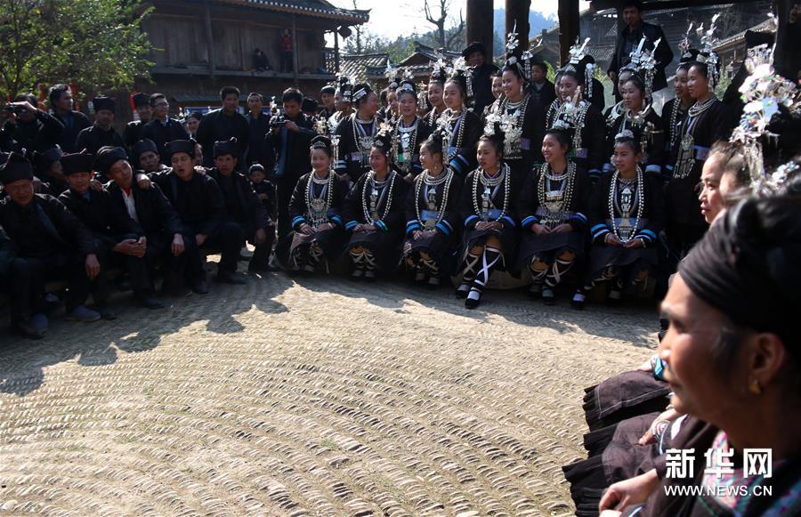2月17日,貴州省黔東南苗族侗族自治州黎平縣巖洞鎮(zhèn)述洞村開展一年一度的“鼓樓之宗”活動。侗族老人在當?shù)刈罟爬系墓臉恰冀ㄓ诿鞔莫氈臉侵v述侗族遷徙歷程,告誡大家要敬老尊賢、和睦相處、團結友善,侗族青年男女身著節(jié)日盛裝圍著鼓樓一邊踩歌堂,一邊唱遷徙古歌,之后在鼓樓旁進行“侗族大歌”對唱,感懷族群遷徙的歷史,傳承傳統(tǒng)文化。新華社發(fā)(楊代富 攝)