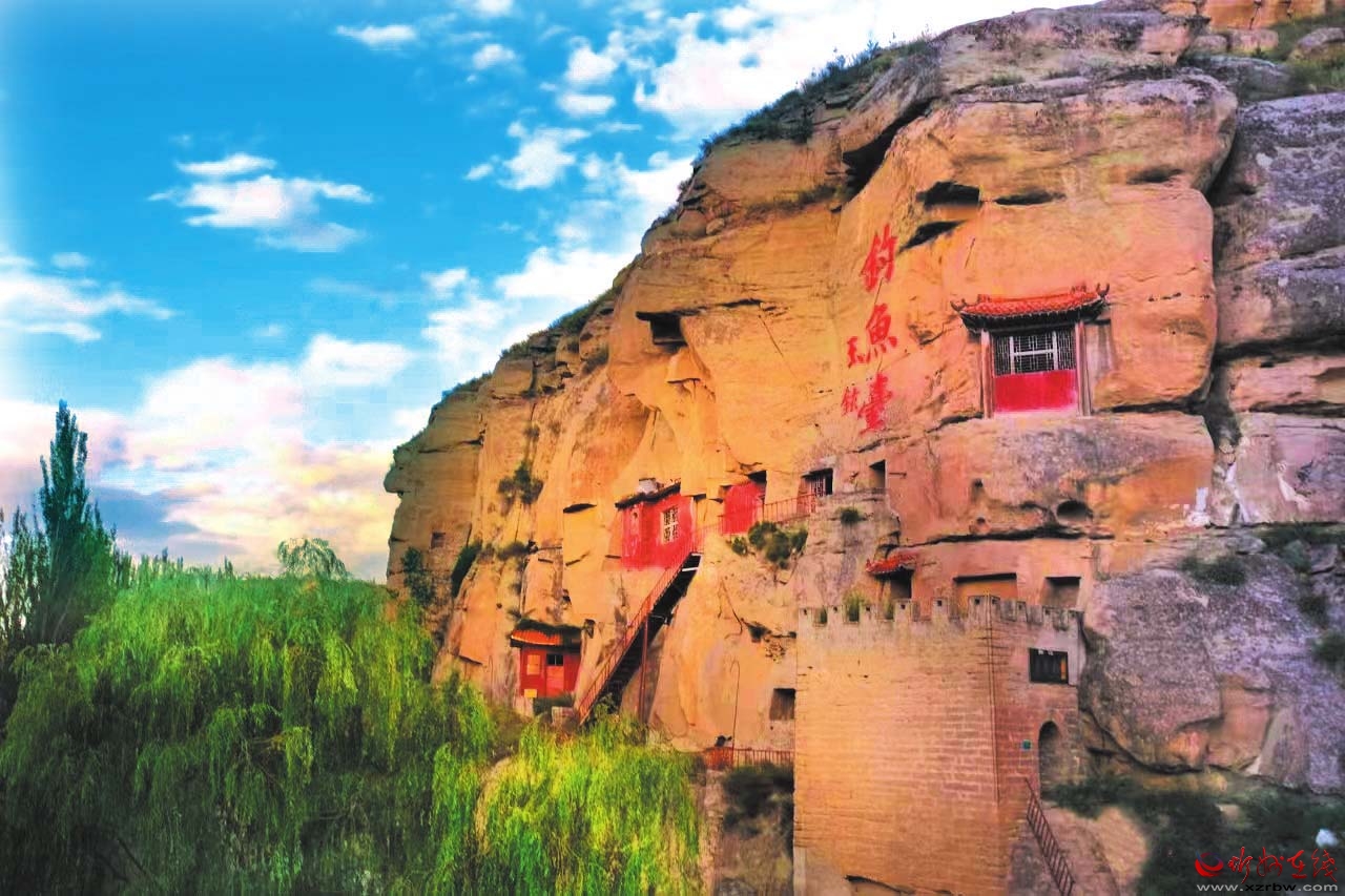 釣魚臺(tái)在石壁上鑿就,構(gòu)件懸空,門額上鐫刻著“天險(xiǎn)雄辟”四字。石窟呈方形,共有六處,形狀大同小異,內(nèi)設(shè)佛祖閣、潮音閣、藏經(jīng)洞、古韻軒、呂祖祠等佛教活動(dòng)區(qū)。從地形上看,釣魚臺(tái)恰好位于黃河由西向南將要拐彎的回旋之地,陳奇瑜之孫陳大德在《釣魚臺(tái)記》中曾對(duì)此地的優(yōu)美風(fēng)景進(jìn)行描述:“輕鰷出水,白鷗矯翼,釣艇往來碧波間……”遺憾的是,陳奇瑜還沒來得及居住,就遭時(shí)任山西巡撫的申朝紀(jì)陷害,以不遵剃發(fā)令、“留發(fā)不留頭”為由押解太原斬首,死后葬于保德縣黃河岸邊距釣魚臺(tái)不遠(yuǎn)處的林家溝村西。