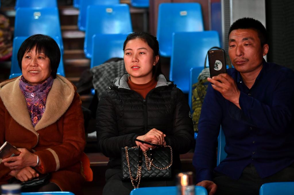 ↑1月3日,在山西省渾源縣荊莊村,村民們在欣賞渾源縣貧困山區(qū)合唱團(tuán)的演出。