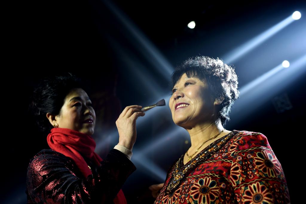 ↑1月3日,山西省渾源縣貧困山區(qū)合唱團(tuán)團(tuán)員們在化妝。