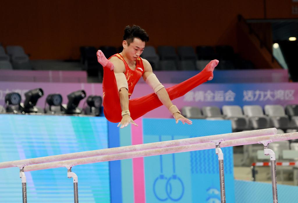 9月9日,鄒敬園在中國國家男子體操隊(duì)2025年世界體操錦標(biāo)賽第二次選拔測驗(yàn)賽中。新華社發(fā)(劉春林?jǐn)z)