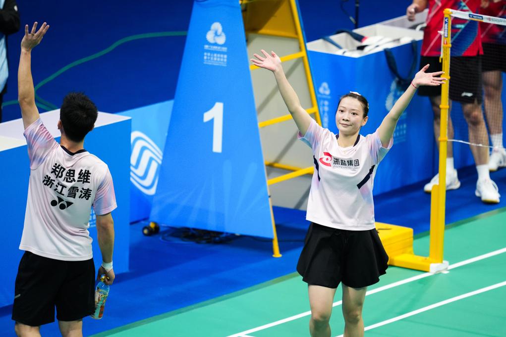 有的告別帶著些許遺憾,有的則收獲圓滿。在羽毛球館里,當(dāng)混雙決賽最后一球落地時,鄭思維只是高舉雙臂,黃雅瓊則輕輕揮了揮手。浙江隊的“雅思”組合2:0完勝湖南隊的周志宏/魏雅欣,用一枚全運會金牌為自己的傳奇畫下句點。