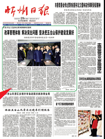 2015年4月2日,世界文化景觀五臺山作為5A景區(qū)被國家旅游局警告,9月14日又被央視“焦點(diǎn)訪談”曝光。9月21日至23日,省委書記王儒林深入五臺山就傳承弘揚(yáng)優(yōu)秀傳統(tǒng)文化、景區(qū)建設(shè)管理、文化旅游產(chǎn)業(yè)發(fā)展、宗教政策落實(shí)等進(jìn)行調(diào)研。他強(qiáng)調(diào),要高度重視五臺山保護(hù)建設(shè)發(fā)展,改革體制機(jī)制,創(chuàng)新管理理念,解決突出問題,切實(shí)提高景區(qū)管理服務(wù)水平,傳承弘揚(yáng)發(fā)展五臺山悠久的佛教文化、優(yōu)秀的歷史文化,帶動全省文化旅游產(chǎn)業(yè)做大做強(qiáng)。