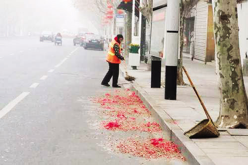 45歲的環(huán)衛(wèi)工張秀生告訴筆者,“越是節(jié)假日,越不能停歇,把路面收拾得干干凈凈,老百姓走著舒坦,我心里也高興?!边@幾天風(fēng)大天冷,張師傅卻干得特別有勁。不到2個小時,城區(qū)健康中街周邊的垃圾全部清理干凈?!白蠲Φ臅r候就是下午四五點(diǎn)鐘,路上的垃圾數(shù)量明顯增加?!睆垘煾嫡f,有時他一直忙到晚上6點(diǎn)才回家,第二天早上,不到4點(diǎn)他就從床上爬起來了。據(jù)悉,春節(jié)期間,城區(qū)的環(huán)衛(wèi)工人基本全部在崗,許多環(huán)衛(wèi)工人甚至提前到崗清掃街道,確保市容整潔。張師傅希望市民們春節(jié)燃放鞭炮時不僅要注意安全,還要保護(hù)環(huán)境衛(wèi)生。