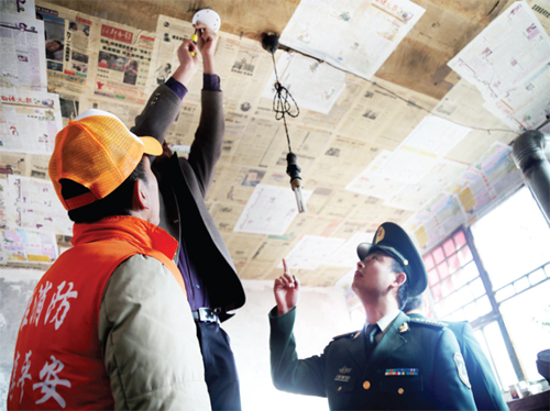 消防官兵為村民安裝感煙探測報警器