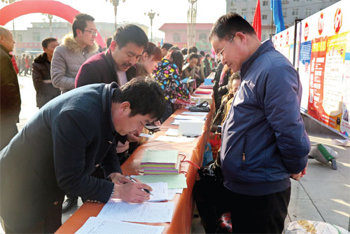 2 月25 日,忻州市2016 年新春招聘活動暨“春風行動”春季用工大型招聘會在城區(qū)古城廣場舉行。副市長張建平等領(lǐng)導深入招聘會現(xiàn)場進行指導。
