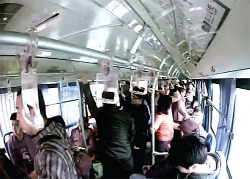 南京709路公交車3月13日監(jiān)控視頻截圖(左一為智杰) 本報(bào)訊 近日,定襄青年智杰被定襄縣委、縣政府評(píng)選為“定襄好人”并給予獎(jiǎng)勵(lì)。一座陌生的城市,一輛擁擠的公交車,智杰以打工者的善意姿態(tài),在司機(jī)突發(fā)疾病失去知覺(jué)的緊要關(guān)頭,毅然撲向方向盤(pán),一腳踩下剎車。救人于危難之中,“定襄好人”智杰當(dāng)之無(wú)愧。