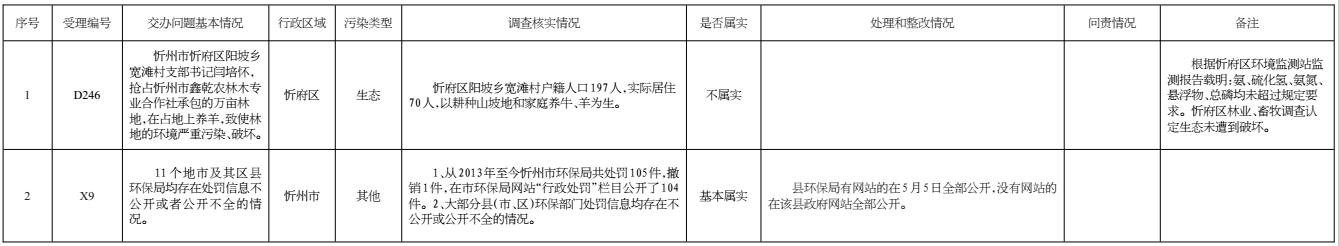 2017年5月2日晚,收到省群眾反映問題處置組督辦的第四批群眾反映問題共計(jì)2件。其中重點(diǎn)案件1件。我市高度重視,立即組織查處,截至5月5日,督辦的2件群眾反映問題已辦結(jié)。其中,確認(rèn)基本屬實(shí)1件、不屬實(shí)1件。對(duì)于環(huán)保部門存在處罰信息不公開或者公開不全的情況,各縣(市、區(qū))已于2017年5月5日前全部在政府網(wǎng)站或環(huán)保部門網(wǎng)站進(jìn)行了公開;對(duì)2件群眾反應(yīng)問題調(diào)查處理情況進(jìn)行了信息公開。