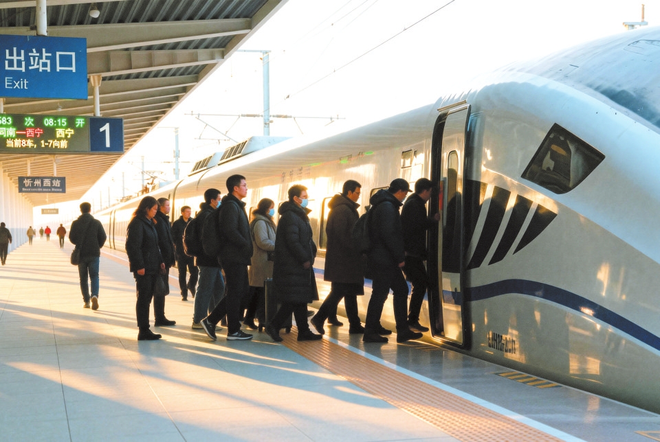 忻州西站旅客正抓緊時(shí)間乘車