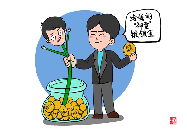 如此“鍍金”是害了孩子。學(xué)習(xí)是一場馬拉松,投機取巧和急功近利違背兒童成長規(guī)律,名不副實的光環(huán)終究會給孩子帶來負擔(dān),甚至誤導(dǎo)孩子一生。父母之愛子,則為之計深遠。想讓這份愛有個正確的打開方式,就請多傾聽孩子的心聲,更加關(guān)注他們的身體素質(zhì)、道德情操、交往能力、自理能力,多一份平常心和實事求是,讓孩子能夠自由健康成長?。ㄎ淖郑憾?手繪:趙凱)