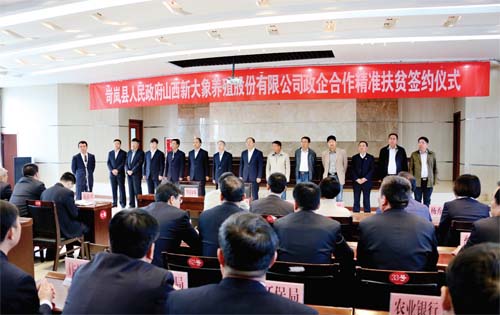 ???圖為岢嵐與山西新大象養(yǎng)殖股份有限公司政企合作精準(zhǔn)扶貧簽約儀式現(xiàn)場(chǎng)。尹艷 攝??