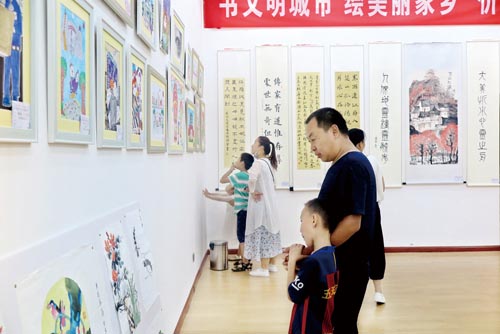 市教育局、市關(guān)心下一代工作委員會、五臺山書畫院、五臺山文化研究院、市書法家協(xié)會、市美術(shù)家協(xié)會、市硬筆書法協(xié)會、市廣播電影電視協(xié)會、黃河新聞網(wǎng)等主辦單位負責人,以及我市書畫家、學(xué)校、書畫培訓(xùn)機構(gòu)代表、參賽學(xué)生代表以及聞訊觀展的市民200余人參加了活動。300余幅充滿童趣、技法嫻熟,從不同側(cè)面抒發(fā)對祖國和家鄉(xiāng)美麗風景的贊美,歌頌秀容大地日新月異變化的書畫作品驚艷了到場的所有人。