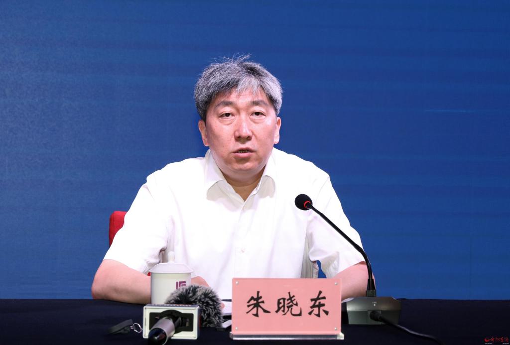 朱曉東介紹忻州市承辦大會相關(guān)情況,公布大會標識、海報和亮點活動,并回答記者提問。范濤攝
