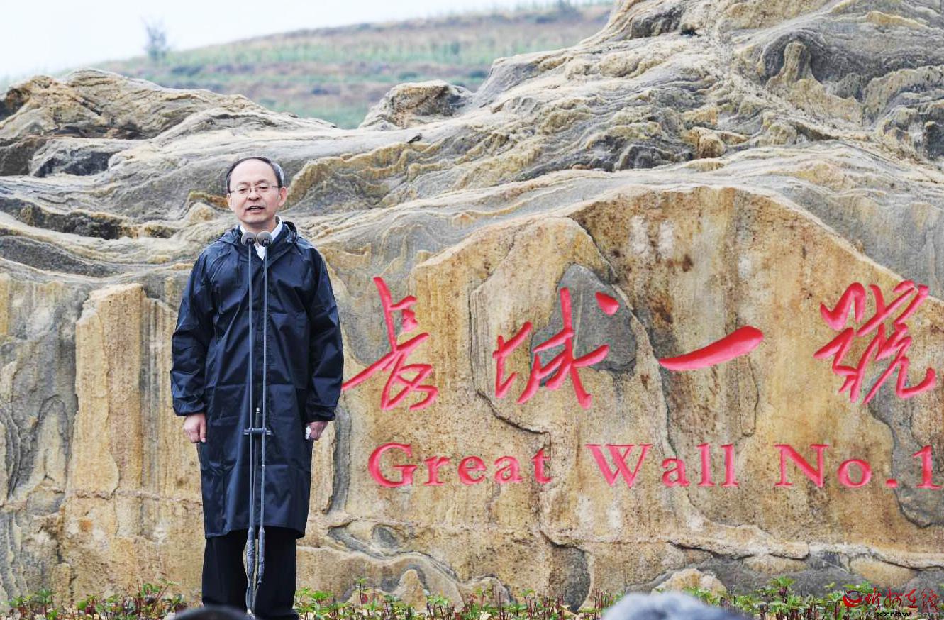 老牛灣長城一號旅游公路“0Km”標(biāo)志文化驛站啟用活動現(xiàn)場。劉紀(jì)森 攝