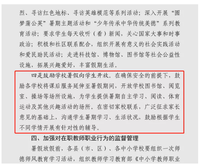 6月16日,河南省安陽市教育局提出各中小學將課后服務(wù)延伸至暑假期間。
