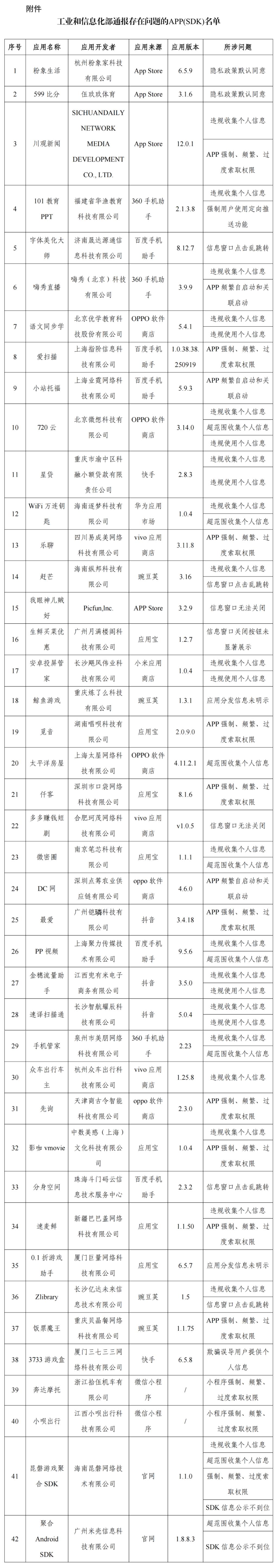 通報:工信部通報!這42款A(yù)PP及SDK存在侵害用戶權(quán)益行為