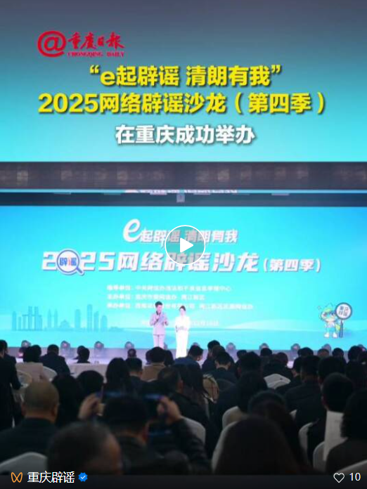 活動現(xiàn)場發(fā)布了《2025重慶網(wǎng)絡(luò)辟謠年度十大案例》《重慶網(wǎng)絡(luò)謠言治理研究報告(2025)》,以及重慶市“首批涉企網(wǎng)絡(luò)舉報辟謠工作直聯(lián)點”試點單位。