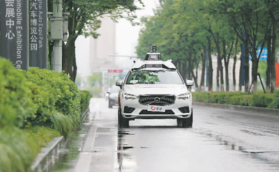 6月27日,上海啟動智能網(wǎng)聯(lián)汽車規(guī)?;痉稇?yīng)用,一輛智能網(wǎng)聯(lián)汽車在路上行駛。