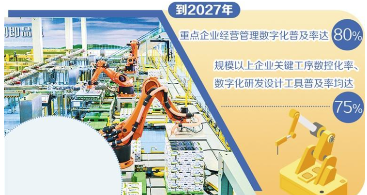工業(yè)和信息化部等7部門日前印發(fā)《食品工業(yè)數(shù)字化轉(zhuǎn)型實施方案》(以下簡稱《實施方案》)提出,到2027年,重點企業(yè)經(jīng)營管理數(shù)字化普及率達(dá)80%,規(guī)模以上企業(yè)關(guān)鍵工序數(shù)控化率、數(shù)字化研發(fā)設(shè)計工具普及率均達(dá)到75%,打造百個數(shù)字化轉(zhuǎn)型典型應(yīng)用場景,梯次實施千個數(shù)字化示范(試點)項目。