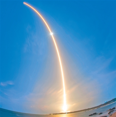 搭載天舟九號貨運飛船的長征七號遙十運載火箭從海南文昌飛向太空。蒙鐘德攝(人民視覺)