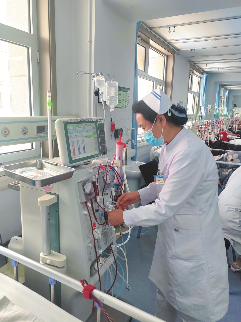 趙香嬋1992年參加工作,2010年被任命為血液透析科護士長,帶領(lǐng)同事積極籌備并組建科室。工作中,她培訓(xùn)護士技術(shù)操作,帶領(lǐng)他們觀察病情、排除機器故障、處理急性并發(fā)癥,下班后修訂相應(yīng)的制度流程,讓醫(yī)院的護理工作做到規(guī)范化、標(biāo)準(zhǔn)化。多年來,她帶領(lǐng)團隊致力于打造原平市一流的血液凈化中心,現(xiàn)科室有長期維持性透析患者190名,每年增加患者30多名,年血液凈化人數(shù)達2.3萬例次,是原平市技術(shù)力量雄厚、病人數(shù)最多、透析人次最多的血液凈化中心,為該市及周邊縣(市)終末期腎病患者提供了就近就醫(yī)的便利,是原平市唯一的重點腎病特色專科。