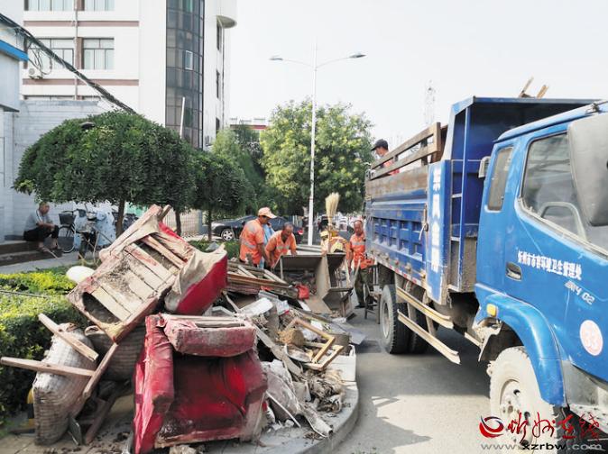 8月2日,忻州城區(qū)環(huán)衛(wèi)工人正在清運垃圾。今年是第六屆創(chuàng)建全國文明城市評選決勝之年。在市創(chuàng)建全國文明城市總指揮部的統(tǒng)一協(xié)調指揮下,結合當前正在開展的城區(qū)“兩下兩進兩拆雙修一提升”專項整治行動,近日,各單位和居民小區(qū)清潔環(huán)境,助力創(chuàng)建全國文明城市。市市容環(huán)境衛(wèi)生管理處組織環(huán)衛(wèi)工人和車輛對指定堆放的垃圾進行了集中清運。 張劍雄 攝