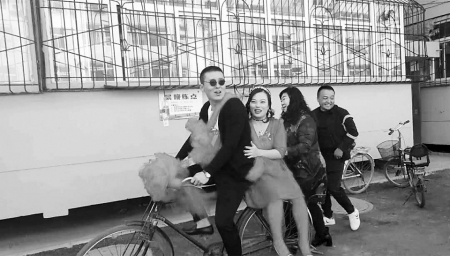 幾天前,這首“騎單車”歌曲里的情景,在太原市小店區(qū)小店街道杜家寨社區(qū)的一場婚禮上再現(xiàn)——新郎幸福地蹬著單車,后座上,美麗的新娘穿著紅色婚紗,甜蜜地靠在新郎背上,他們穿過社區(qū),在沿途眾多鄉(xiāng)鄰、親友的喝彩聲、祝福聲中,舉行了一場特別的單車婚禮。