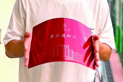 2023版錄取通知書,不但繼續(xù)采用3D手工制作,而且材質(zhì)更薄更堅(jiān)挺,厚度差不多和3張普通A4紙相當(dāng),可任意對(duì)折、側(cè)壓,甚至可以像紙張一樣卷曲成軸。