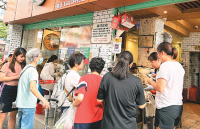 粽子熱氣騰騰地出鍋,門外擠滿了排隊(duì)的本地市民、外地游客……位于深圳蛇口市場(chǎng)門口的嘉華小吃店,店面不大,但人氣很旺?!八恤兆拥陜?nèi)現(xiàn)包,高峰期4個(gè)‘粽子工’從早到晚忙不停,一天賣出好幾千個(gè)?!钡曛魅~向家說(shuō)。憑借父輩傳授的裹粽手藝,葉老板從推車擺攤開始,將嘉華小吃店做成一家20年老店,如今又登上了“必吃榜”。