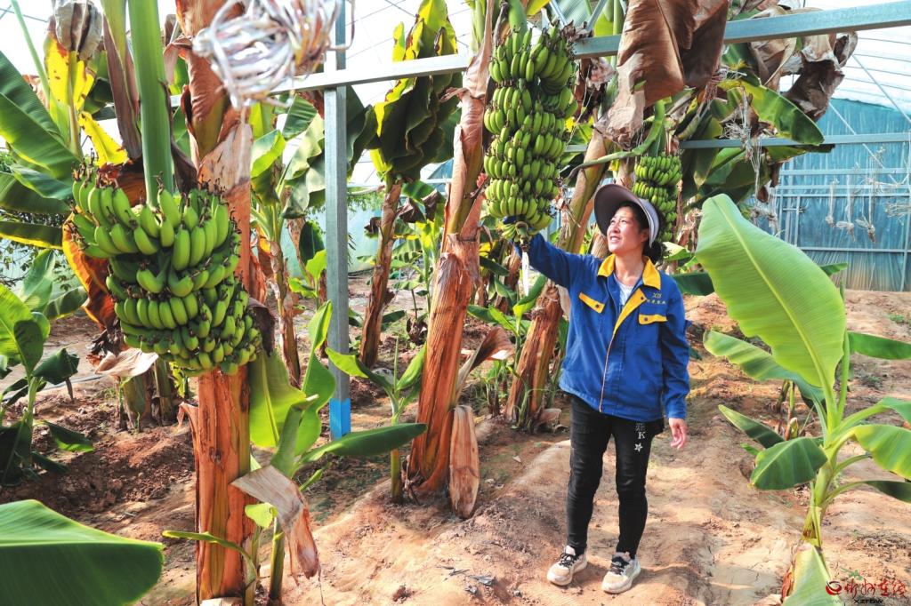 去年,侯學光在大棚開始試種“中蕉九號”?!靶酶畢^(qū)的水土環(huán)境竟與蕉苗生長條件高度契合,根系健壯少病害,首年就順利掛果。香蕉未熟時脆甜清香,成熟后軟糯可口,品質(zhì)不輸南方蕉?!彼d奮地向記者介紹說。通過邀請專家改良土壤、施用自產(chǎn)有機肥、科學規(guī)劃間距,曾經(jīng)的邊角地已變身茂密蕉林。