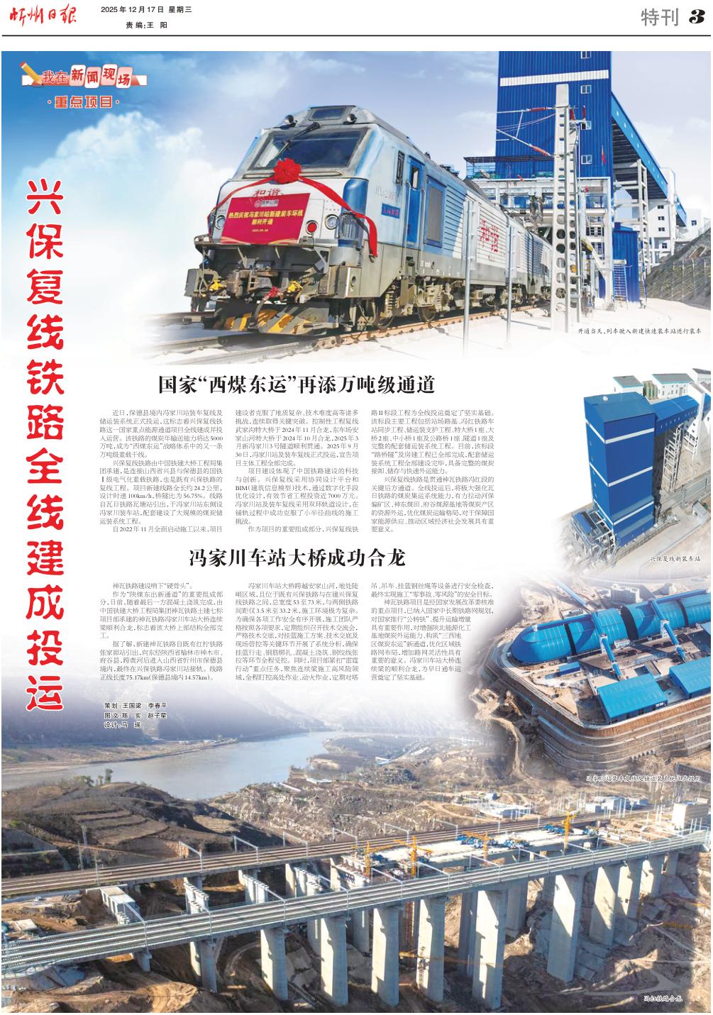 興保復(fù)線鐵路是貫通神瓦鐵路馮紅段的關(guān)鍵后方通道。全線投運(yùn)后,將極大強(qiáng)化瓦日鐵路的煤炭集運(yùn)系統(tǒng)能力,有力拉動(dòng)河保偏礦區(qū)、神東煤田、府谷煤源基地等煤炭產(chǎn)區(qū)的資源外運(yùn),優(yōu)化煤炭運(yùn)輸格局,對(duì)于保障國家能源供應(yīng)、推動(dòng)區(qū)域經(jīng)濟(jì)社會(huì)發(fā)展具有重要意義。