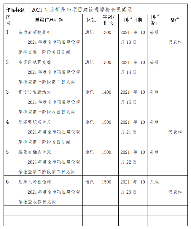 經(jīng)忻州日?qǐng)?bào)社編委會(huì)研究決定,以下作品擬推薦申評(píng)第三十一屆山西新聞獎(jiǎng),現(xiàn)予以公示。有反對(duì)意見者,請(qǐng)將反對(duì)意見書面報(bào)至統(tǒng)籌部。