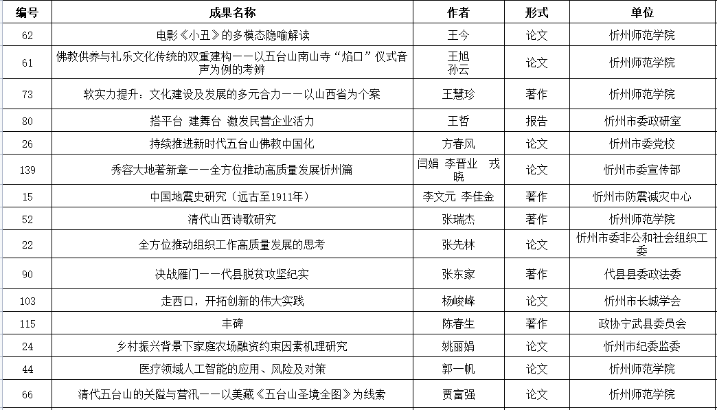 附件:忻州市社會(huì)科學(xué)研究?jī)?yōu)秀成果評(píng)獎(jiǎng)擬獲獎(jiǎng)名單