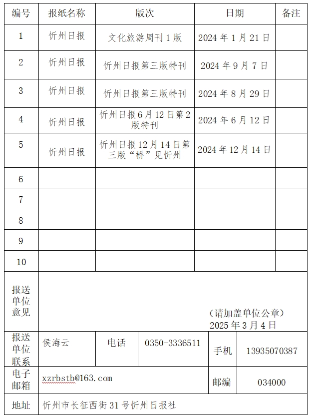 經(jīng)忻州日報社編委會研究決定,以下作品擬推薦申評第34屆山西新聞獎,現(xiàn)予以公示。有反對意見者,請將反對意見書面報至統(tǒng)計考核部。
