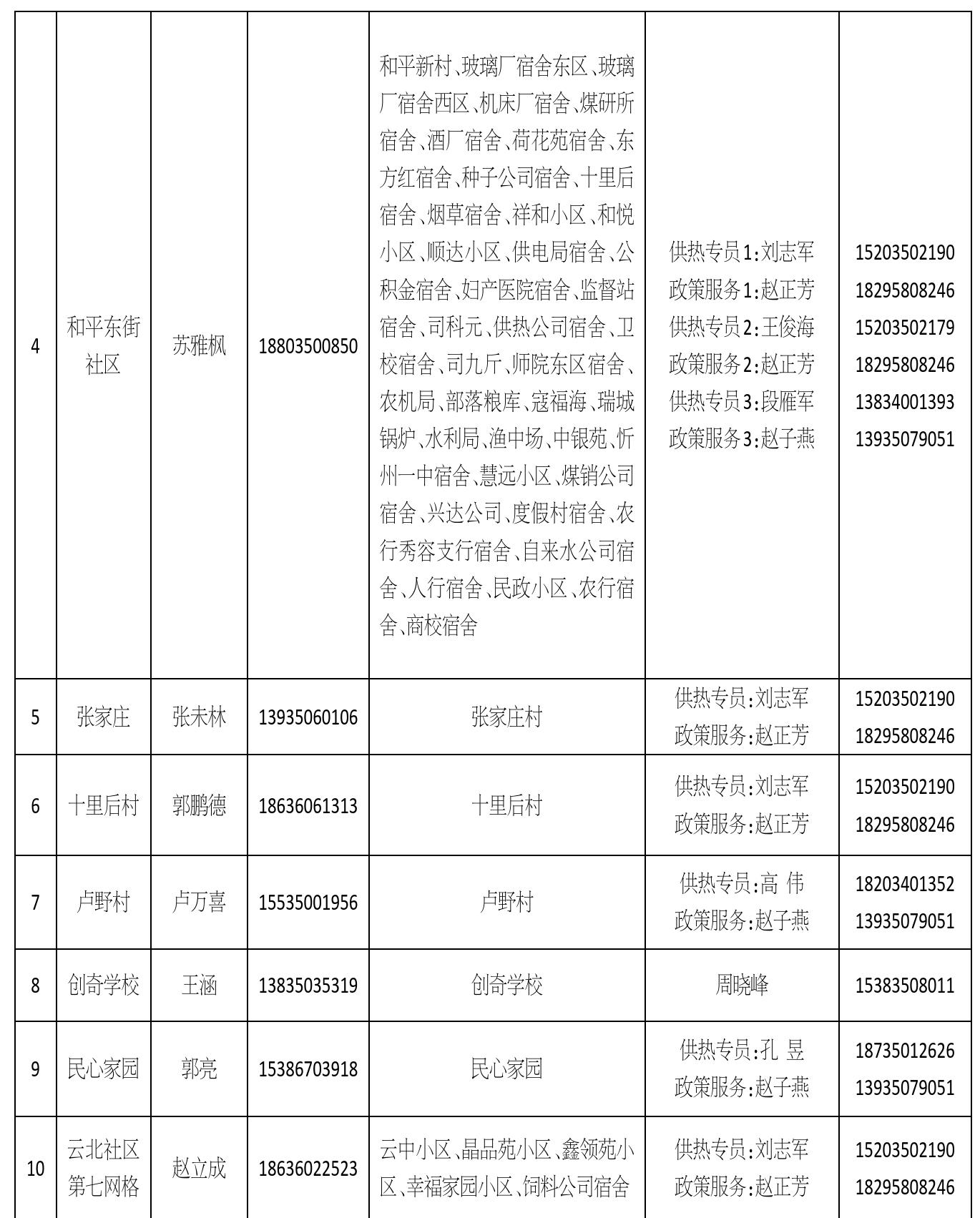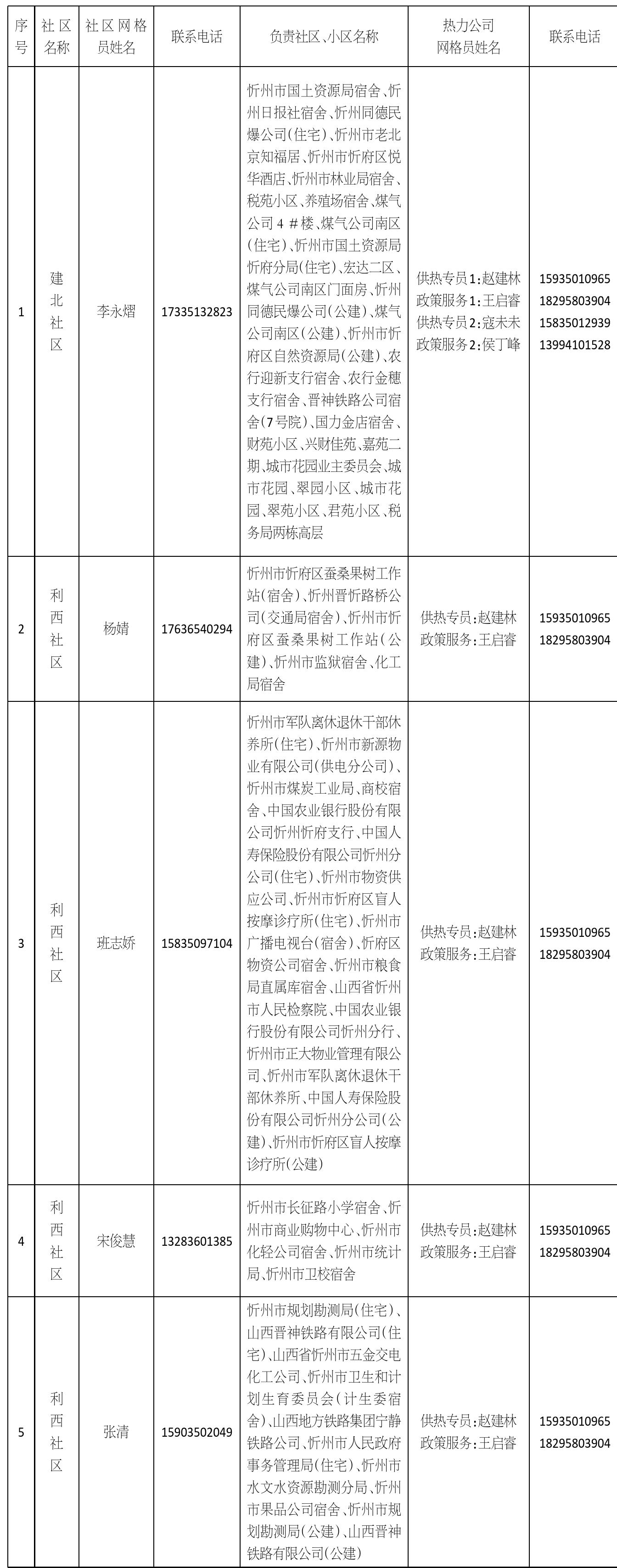 忻州城區(qū)供熱一片區(qū)網(wǎng)格員信息公示