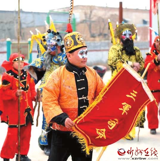 把古代戰(zhàn)爭場面演練成劇,表現(xiàn)多為騎兵對戰(zhàn),故稱為大馬社火。今年春節(jié)期間,定襄北社西村大馬社火被錄制成視頻上傳后,成為最受歡迎的鬧紅火視頻之一,人們紛紛轉載,贊不絕口。剛剛過去的元宵節(jié),大馬社火也是定襄鬧元宵不可或缺的重頭戲,北社西村眾多村民自發(fā)組織起來耍社火,表達祈福驅邪,對風調雨順、豐產增收的祈愿,形成了一道獨特的傳統(tǒng)民間文藝風景,還吸引了山西省民間文藝家協(xié)會專家現(xiàn)場指導,舉行了民間民俗文化調研座談會。