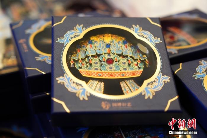 資料圖:中國(guó)國(guó)家博物館推出的孝端皇后鳳冠冰箱貼。中新社記者 趙文宇 攝
