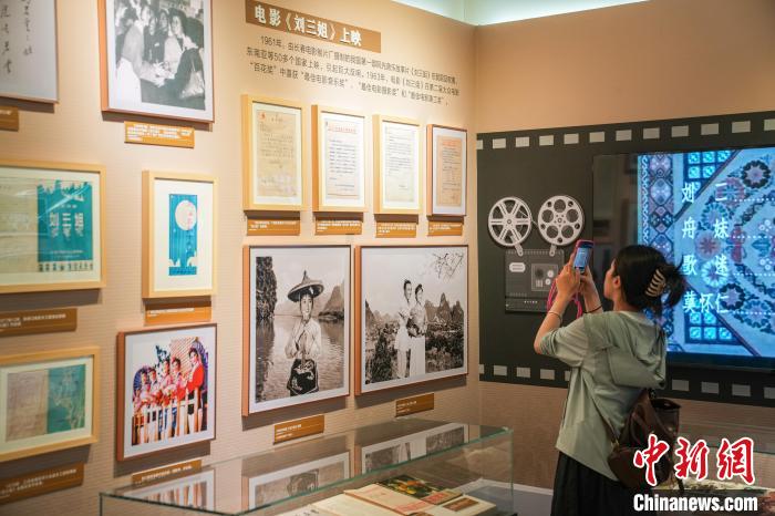 本次展覽上,有近百件劉三姐文化檔案首次亮相。展品中,彩調(diào)劇《劉三姐》劇本第一方案原稿、1960年5月越南胡志明主席在南寧觀看歌劇“劉三姐”后與演員合影照片、1963年6月原中國文化部批復(fù)同意向印度尼西亞華僑提供《劉三姐》有關(guān)資料等珍貴檔案資料,吸引參觀者駐足觀看。