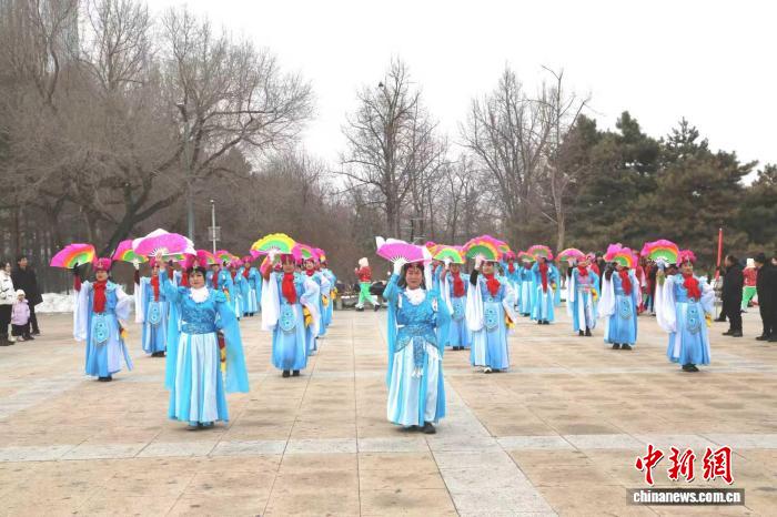 2月10日,民眾在吉林長春表演東北秧歌。 趙瑩 攝