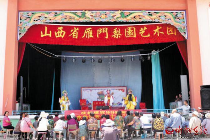 本報訊 薪火相傳梨園情,送戲下鄉(xiāng)頌黨恩。7月3日上午10時許,代縣峨口鎮(zhèn)上木角村委會大院的“瑞祥舞臺”上,鑼鼓鏗鏘,喧樂縈耳,熱鬧非凡,代縣雁門梨園藝術(shù)團(tuán)(原代縣峨口退休老干部戲迷樂開心藝術(shù)團(tuán))正在這里演出,與該村黨員干部群眾共慶黨的99周年華誕,歌頌黨的恩情。演職人員以群眾喜聞樂見的形式,抒發(fā)老干部愛黨、愛國,永遠(yuǎn)跟黨走的豪情壯志。